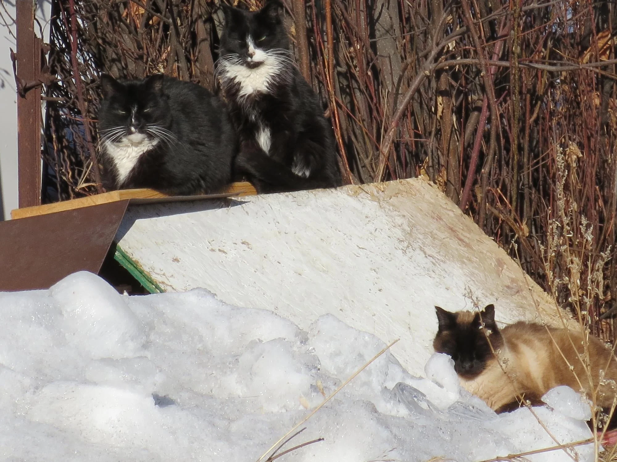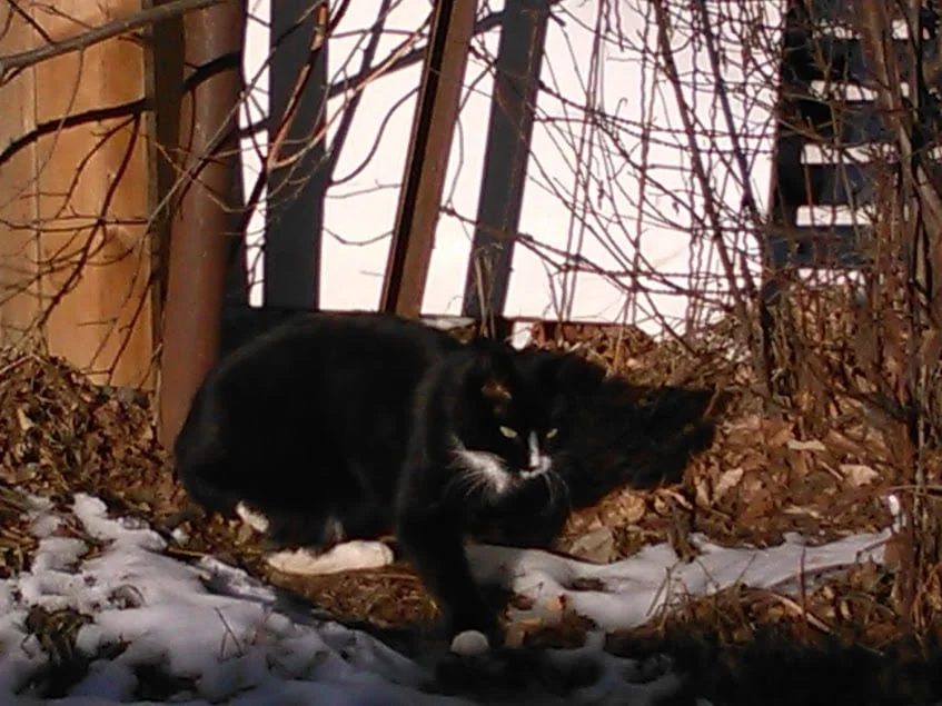 Burt was a shy, timid cat who had become braver since his brother Dash succumbed to illness last April. Burt enjoyed sitting in the feeding station in hopes that the feeders would give him cat treats while he waited for them to fill the food and water bowls. Sometimes, he would even allow them to give him a quick pet on the head. While we're very sad that we won't see Burt at his regular haunts anymore, we are comforted knowing he has joined his brother Dash, and that he will experience no more struggles or cold winters. Rest in peace sweet guy, you will be missed by all the feeders.